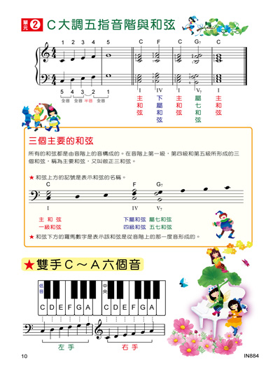 本書10大特色:選曲一級棒、大單元教學、同心圓編排、3種識譜法、技巧提示、樂理解說、雙手並重、彩色插圖、放大音符、鼓勵貼紙。