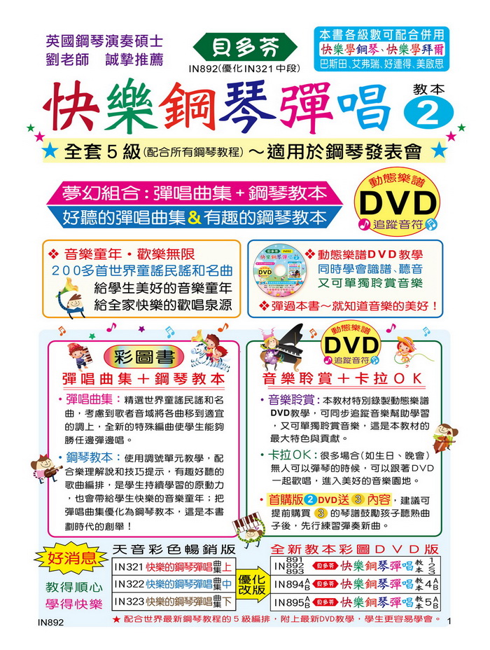 IN892 《貝多芬》快樂鋼琴彈唱-2+動態樂譜DVD